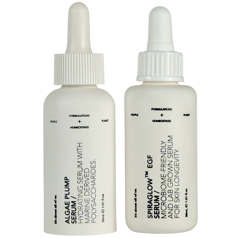 The Dew-O combines two seaweed-based serums—Algae Plump Serum and Spiraglow EGF Serum—crafted with locally sourced seaweed, fermented algae, and EGF peptides, promoting skin regeneration and protection.