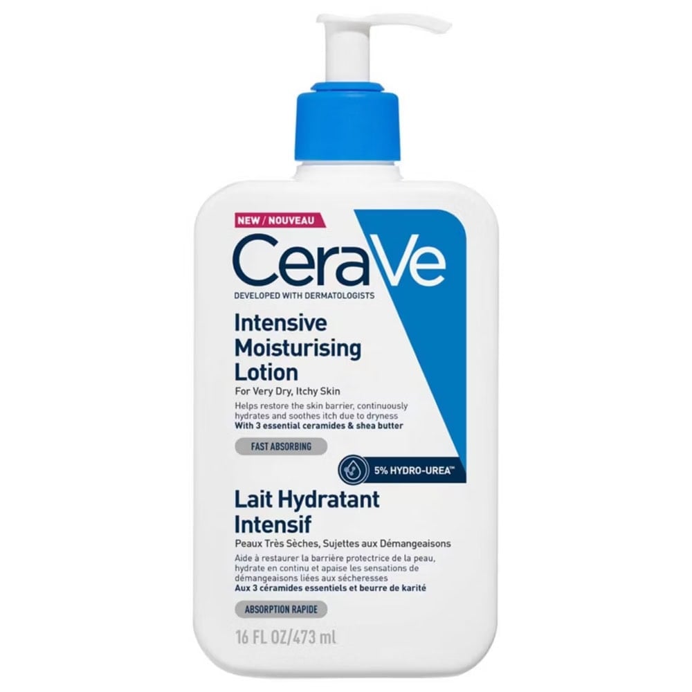 CeraVe Intensive Moisturizing Lotion incorporates 5% Hydrourea, hyaluronic acid, and shea butter with MVE delivery technology, keeping skin hydrated for up to 72 hours.